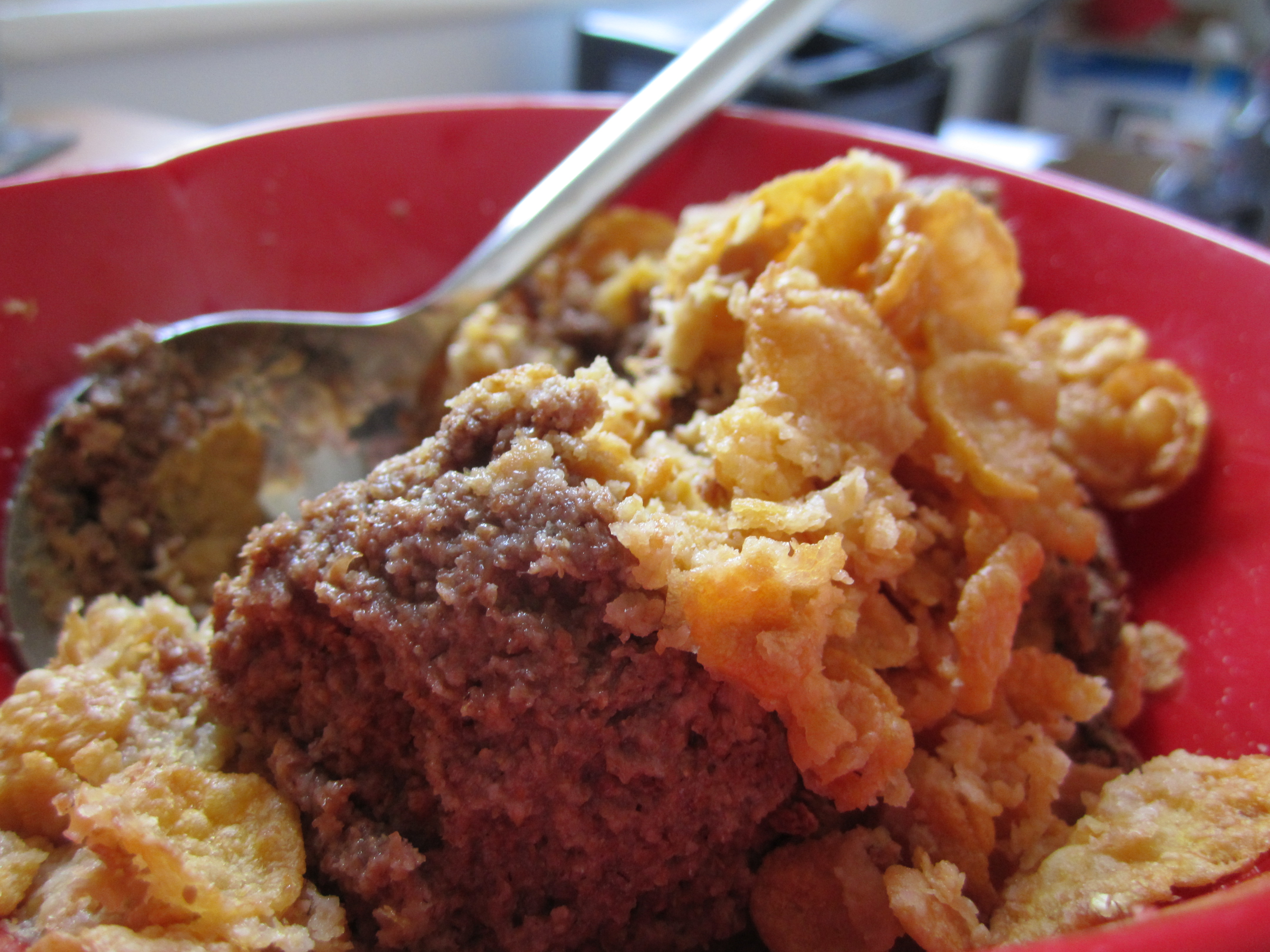 The Cornflakes had congealed to an unrecognisable soggy stodge. There was no trace of milk left, no liquid relief from the bowl of stodgy doom that was my breakfast.