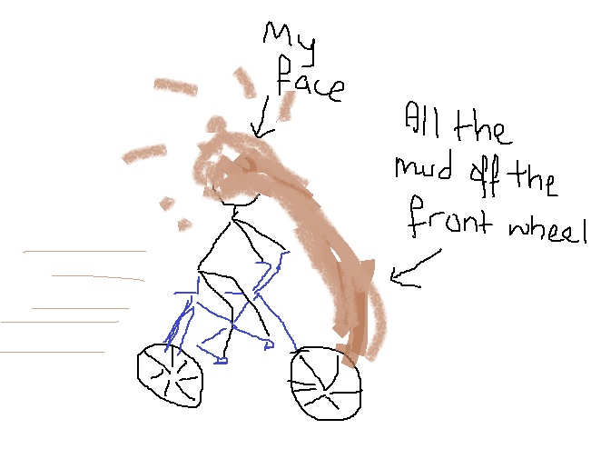 So I found a nice dry bit of pavement, got back on my bike and, eager to be home so that I could make myself not covered in shit anymore, started peddling very fast. This was immediately poor cycling decision number 7.
