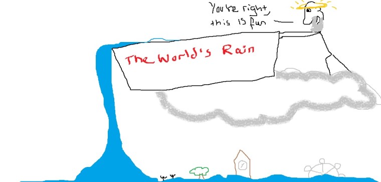 Now, as those of you who live in England will be aware, we have had quite a lot of rain recently. And when I say quite a lot of rain, I mean we’ve had more rain than if we’d rung up God and said ‘Tell you what, God, you know all that rain you’re storing up there that’s got to last for the whole world until the end of time? Well, just for a laugh, why don’t you dump it all on England every day for about six weeks, and we’ll see what happens?’