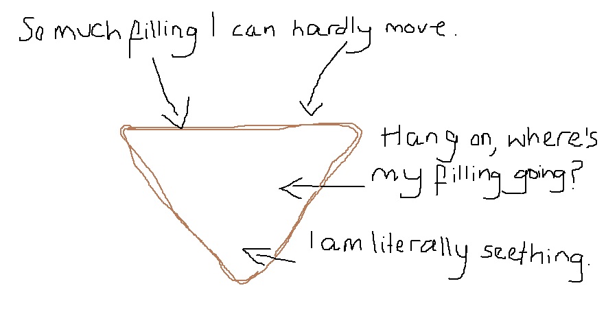 You see, Listener, sandwich manufacturers are deceitful toads. They will construct a triangular sandwich so that it appears to be consistently spread with a generous, nay, munificent amount of filling. It is only when the innocent, trusting customer has purchased and nibbled the initial hypotenuse of the triangular sandwich, that they discover there is no more filling.