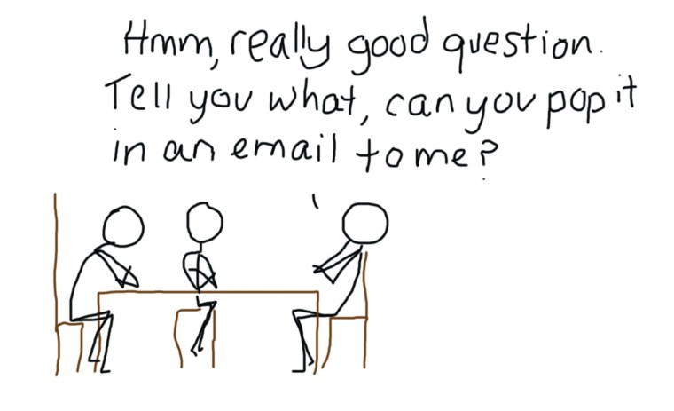I was recently in a very important meeting where I was a trifle out of my depth. I was being asked questions that really tried to fly over my head, but my brain was somehow managing to net them and fire back reasonably intelligent responses. This was a textbook example of teamwork: my brain and I were happily working together, and we did a small high five every time I responded to a question with actual words that made moderate sense and not complete hogwash.
