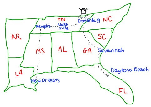 After an overnight stop in Athens, Georgia, we ploughed up through the green and red fields of rural Georgia under a crystal clear sky, briefly cutting through a thin slice of North Carolina, where we passed more churches than was surely practical. I immediately had a burning question for these churches: