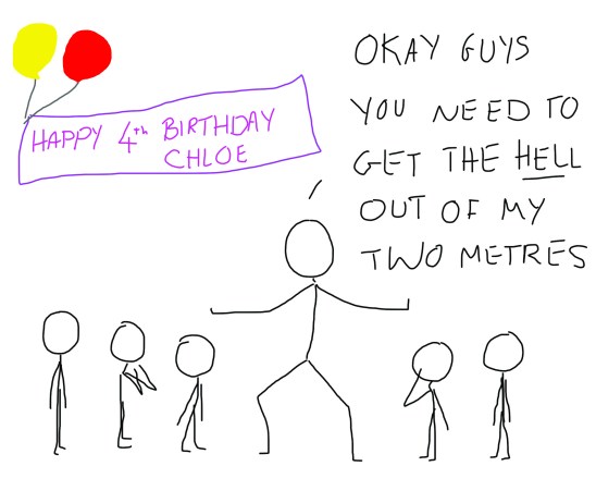 What if, when we’re allowed to have gatherings, and places get more crowded, and more people spill outside, and we’re allowed to go to things like birthday parties, we have a freak out?