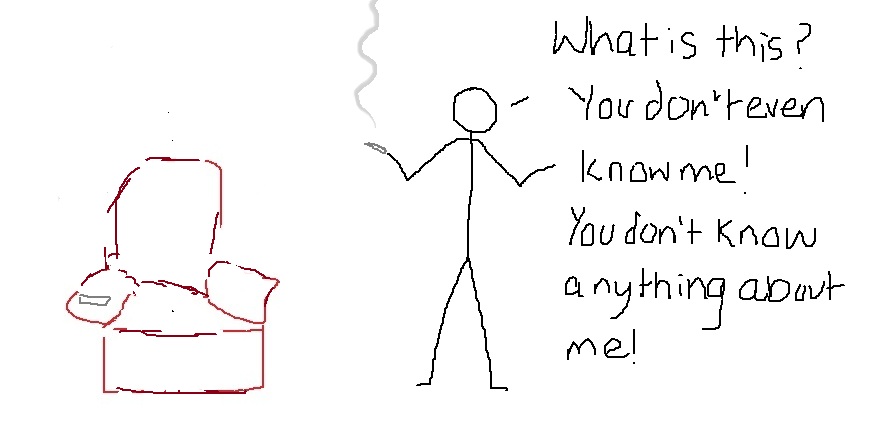 Stick Man, there’s so much pain in you. I just see so much pain. Have you ever tried talking to someone? Instead of hiding behind your anger and your promiscuity, just talk to someone. What’s hurting you, Stick Man? What’s happened in your life that has been so terribly painful?