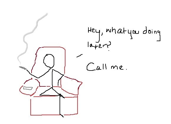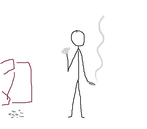 I’ve asked Stick Man to say a bit about himself and how he got into the blogging world, so hopefully it’ll be quite interesting for those of you who know other stick men who might like to get into the industry, because it’s not easy – some of the working conditions really are appalling; I mean, they have to hang around inside Microsoft Paint waiting for their next job, and it’s cramped in there, and apparently the Cropping Tool is a right arrogant bastard, and the Edit Colours Box bangs on about when it coloured in a Banksy, which I don’t believe because I can’t see Banksy fiddling around with his laptop mousepad when he’s halfway up a ladder outside a prominent building in the dead of night.