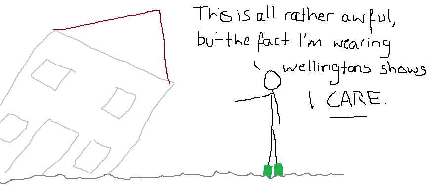 Some of us are underwater. Some of us have no roofs. Some of us have lost everything. The print journalists amongst us are fed up with trying to find synonyms for ‘wet’ and ‘flooded’ and ‘catastrophic’, and never want to see or write the word ‘deluged’ again. Several of our politicians have spent a considerable amount of time in Wellington boots pointing at floods.