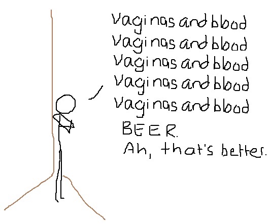 Despite the prevalence of menstruation in our world, his reaction is not uncommon amongst menfolk, and is one of, I believe, four types of male reactions to this most foul of female ‘habits’.