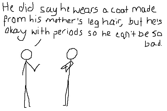 The fourth reaction is a fairly rare one: those men that are actually okay with the whole thing. These heroes put the men in menstruation. A woman will never fail to be delighted to find one. Believe it or not, gents, it’s actually a very attractive quality. I’m not saying it’s a total selling point, but it certainly helps.