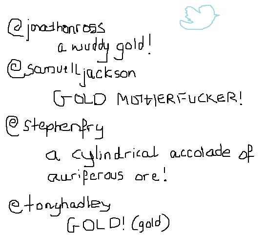 Facebook and Twitter can’t talk about anything else. Instead of getting fascinating insight into what celebrities think about politicians, or when they’re next on telly, or how much they’ve just spent on a sandwich, we’re getting representations of the various ways in which getting a gold medal can be expressed.