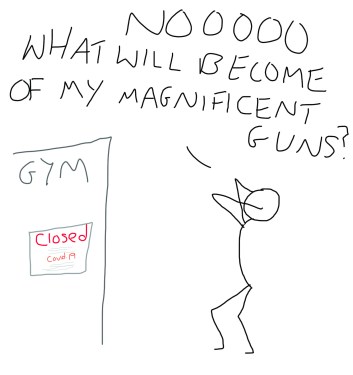 And then we broke up. Not because we had an argument, or I got bored, or the gym started making unreasonable demands about wanting to see me every day, none of that. We broke up because there was a sodding pandemic.